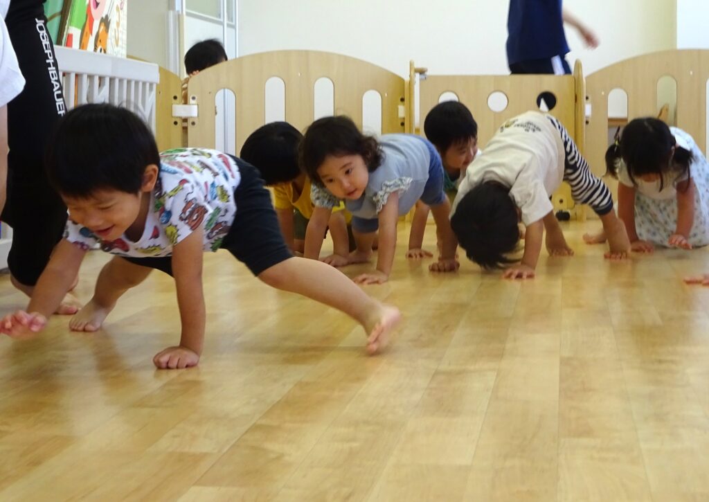 くまさん歩きは、膝とお尻を上げて進むのがとっても大変!!