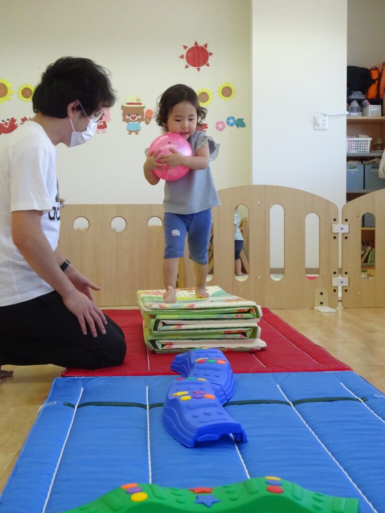 今日も、先生の姿が見えると「しゅうせんせいだぁー!」と喜び、体操の時間になるのをワクワクしながら待っていました💕