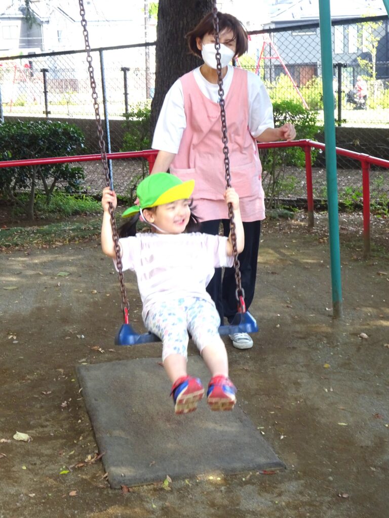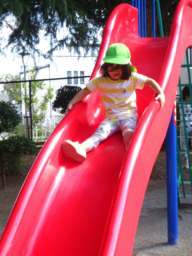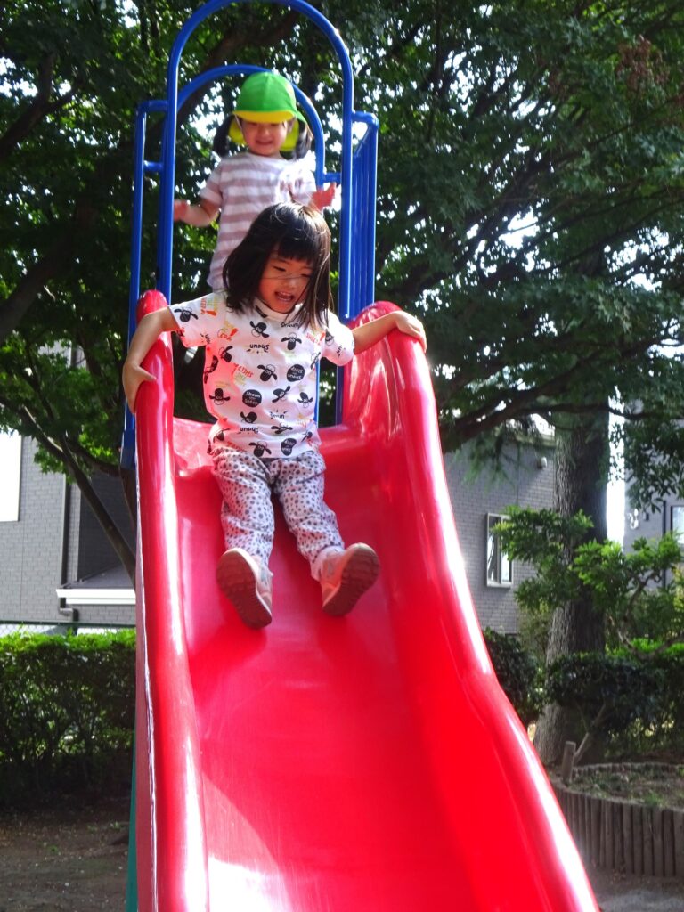 「たのし~い!!!」と何度もすべり台をすべったり、ブランコも楽しそうですね♪