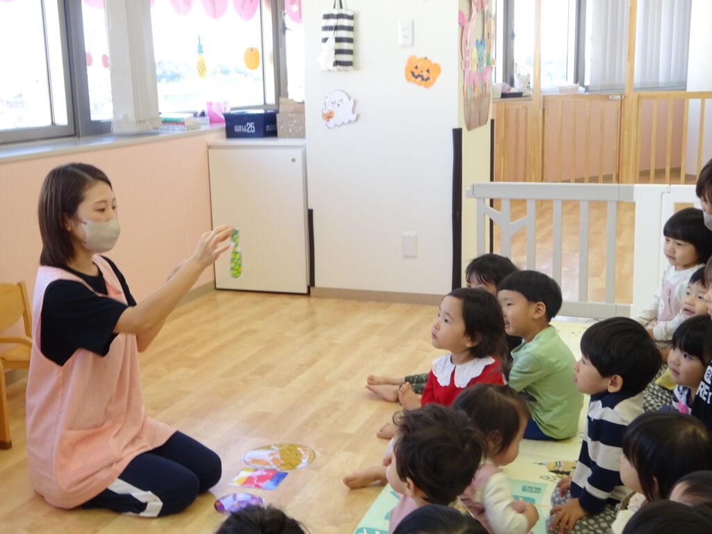 最後はパネルシアターで『おばけの国のハロウィン仮装』を見ました🎃