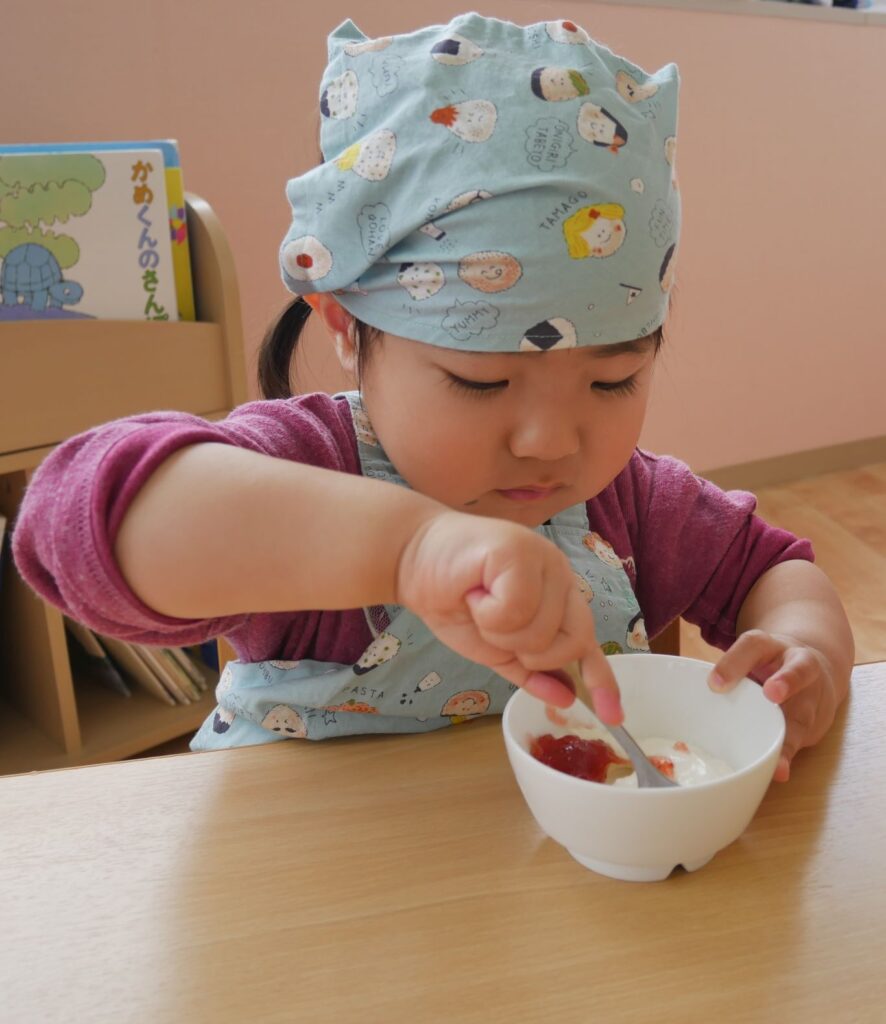 今回の食育はクラスに合わせて行いました!みんな楽しくでき、おいしそうに食べられていました!ヨーグルトがちょっと苦手かなというお友だちもいましたが、少しづつ食べられるようになってくれるといいなと思っています😊