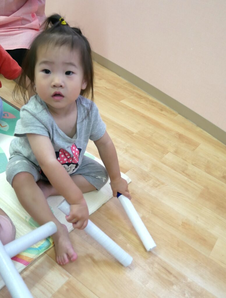 『ながぐつマーチ』の曲に合わせて「ドンドン!」とリズム打ちをしました🥁