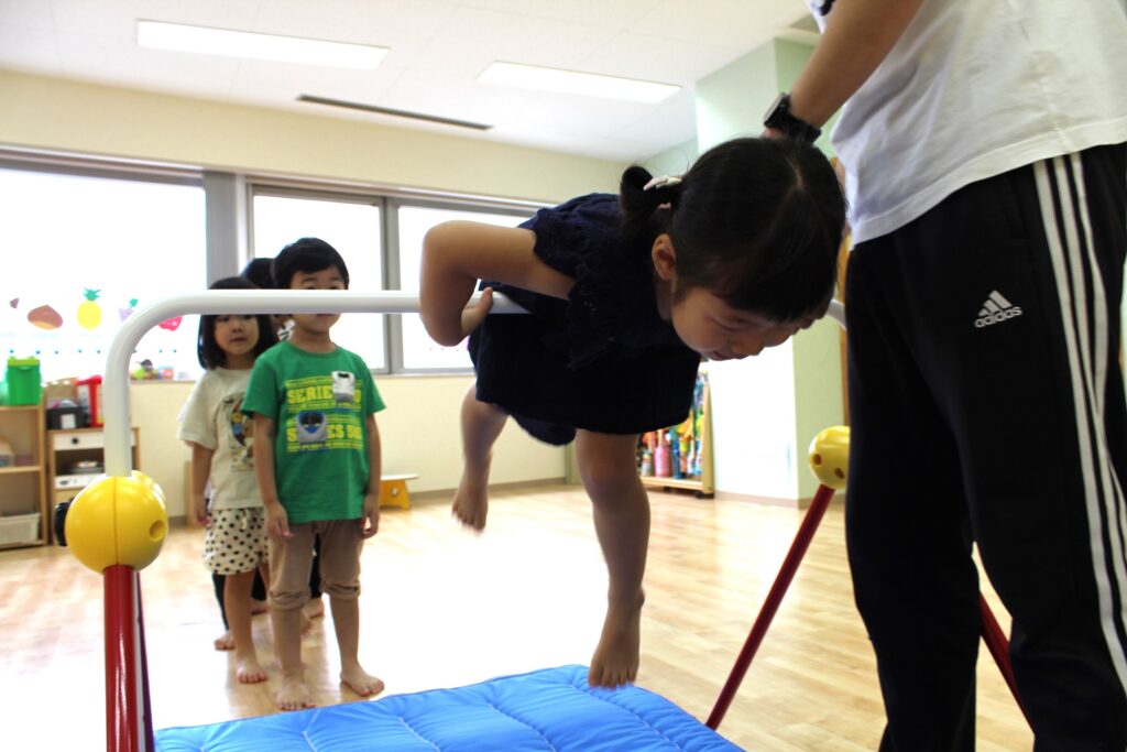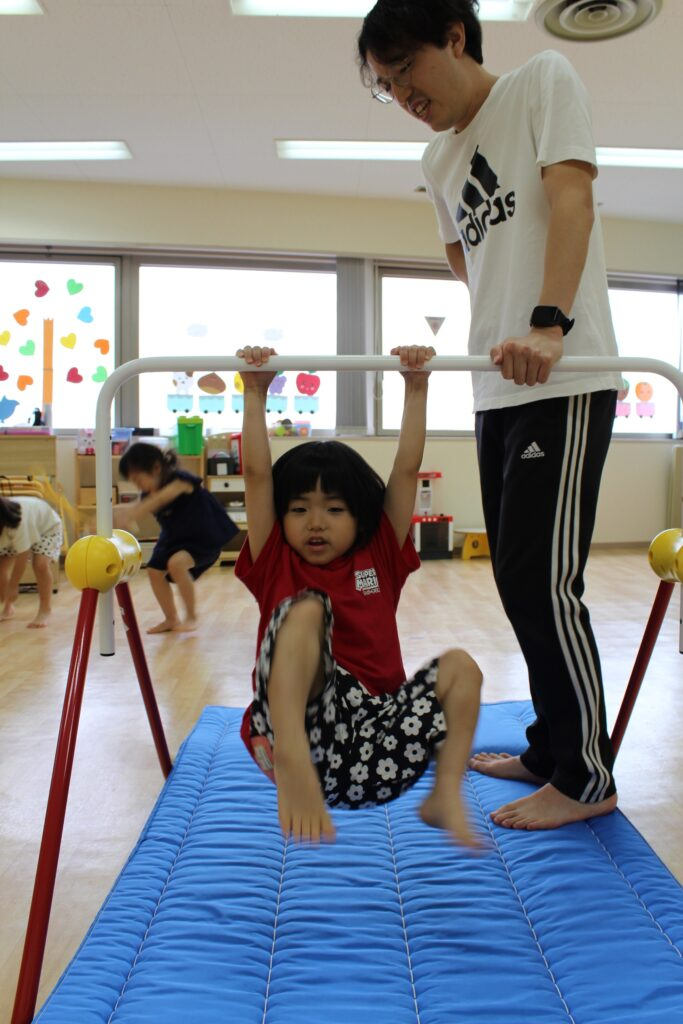 鉄棒の上にしっかりと乗ることができました👍
