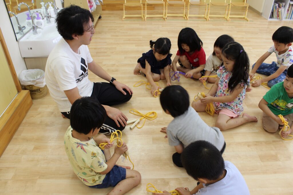 縄跳びを使った後は、片付け方を教えていただきました!