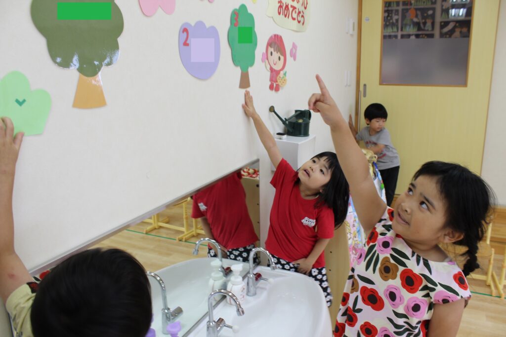 高い所にあるきみどり色は指を差して教えていました👍