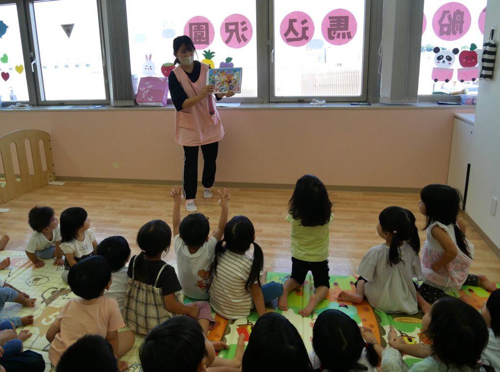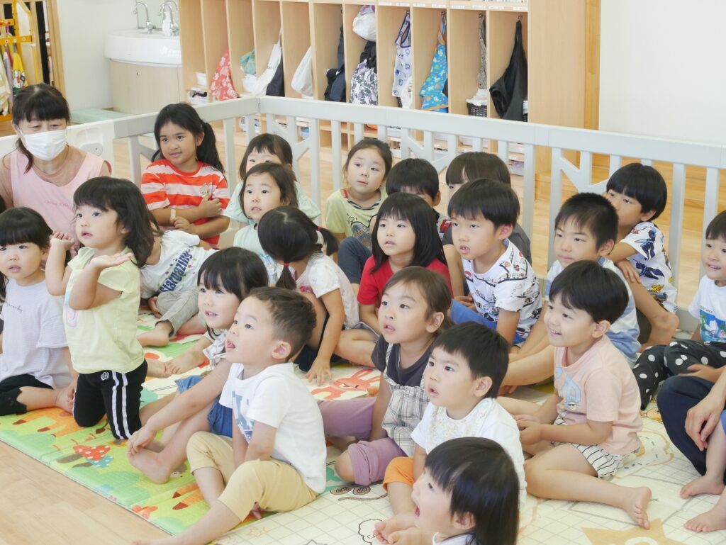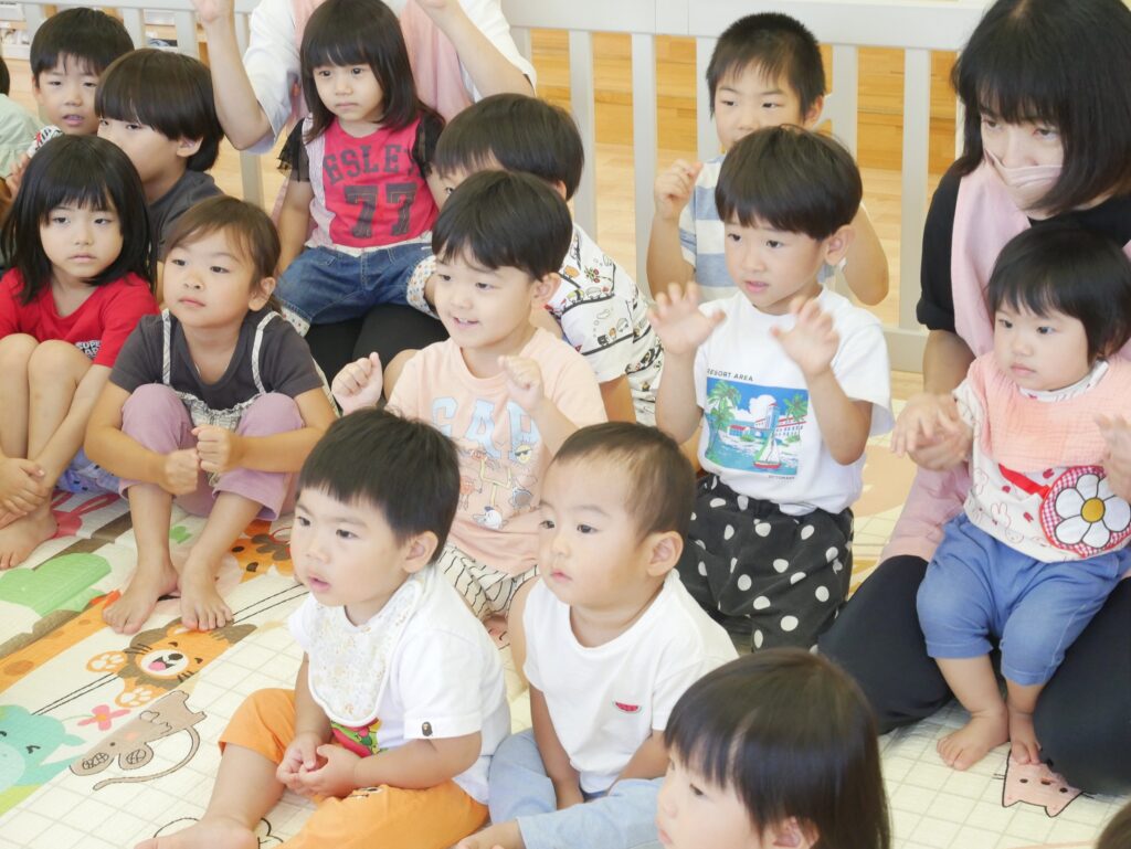 「〇の中に何が写ってるかな?」と聞くと大きな声で色んな回答が聞こえてきました👂