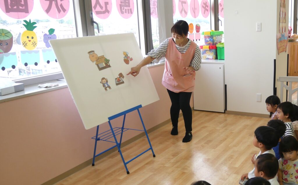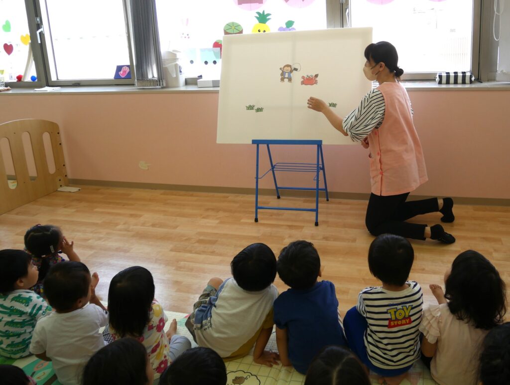 先生からのプレゼントは、『さるとかに』のパネルシアターです🐒🦀