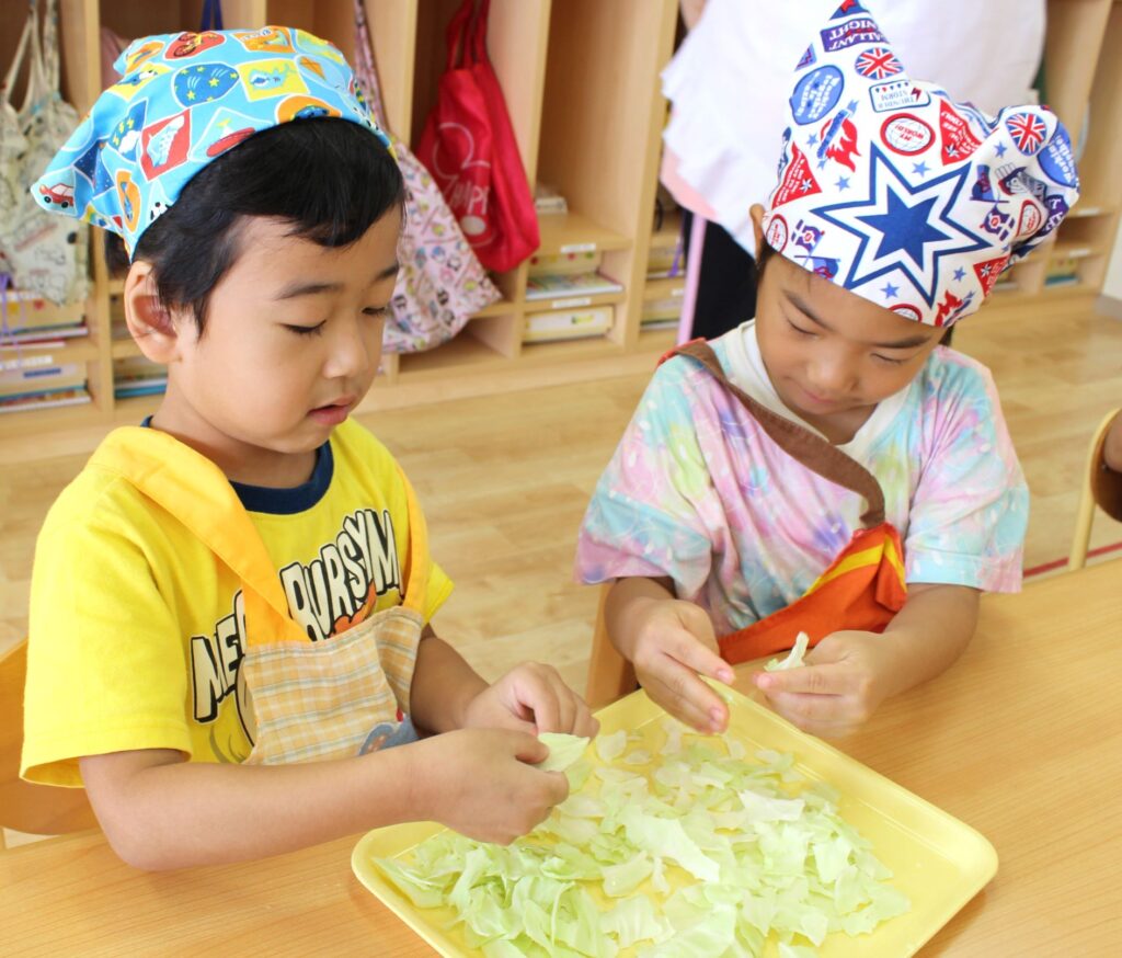 キャベツは手でちぎります✋食べやすい大きさにちぎってね😊