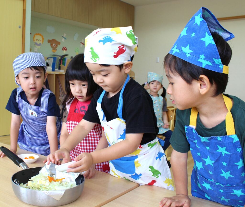 9月のフルーツ組の食育は秋に旬を迎える食材を使って『きのこごはん』と『鮭のちゃんちゃん焼き』を作りましたよ🍁