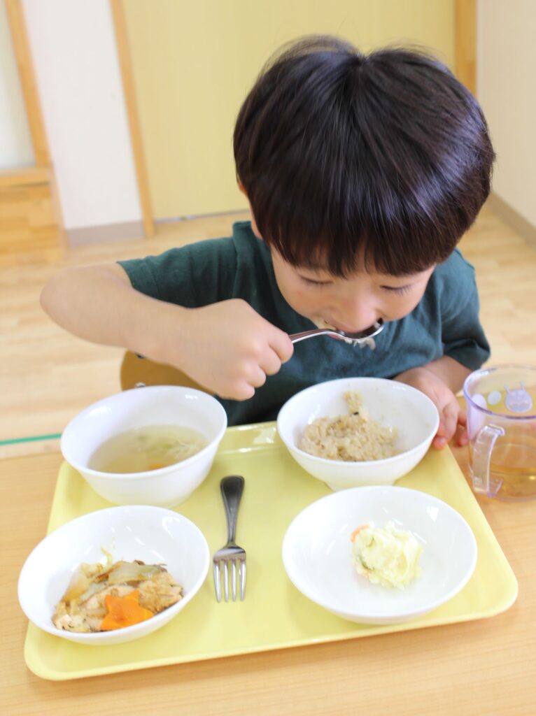 最初に鮭やきのこごはんから食べるお友だちも多く、おいしいという声もたくさん聞こえてきました✨