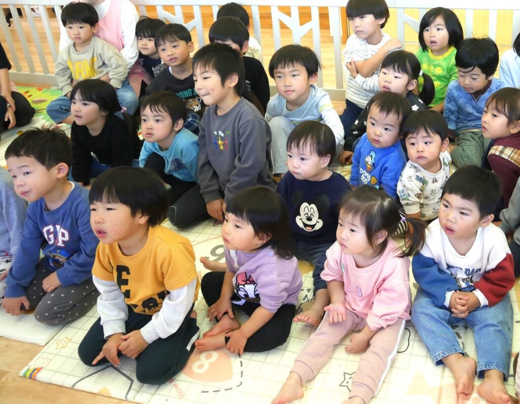 「大きくなったら何になる」の手遊びをしてから、ラミネートシアターの「デザートバス」をしました。