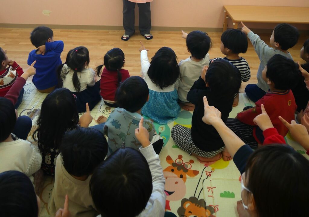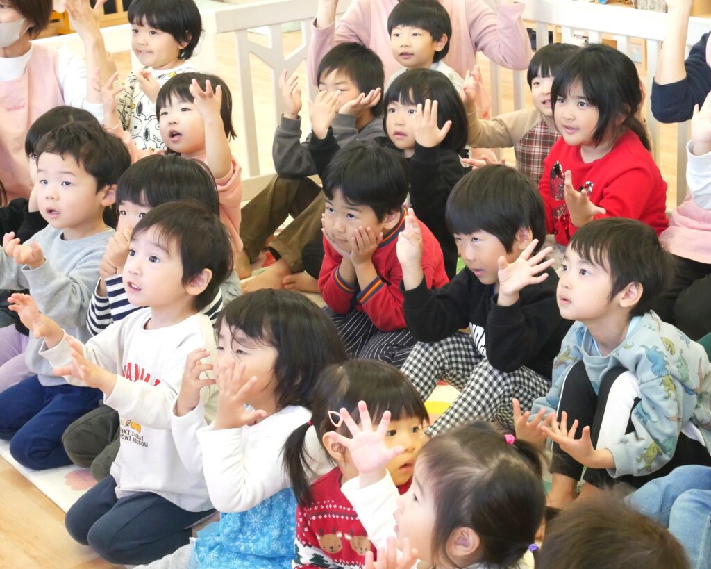 先生の真似をしながら楽しそう手遊びをしていますね😆