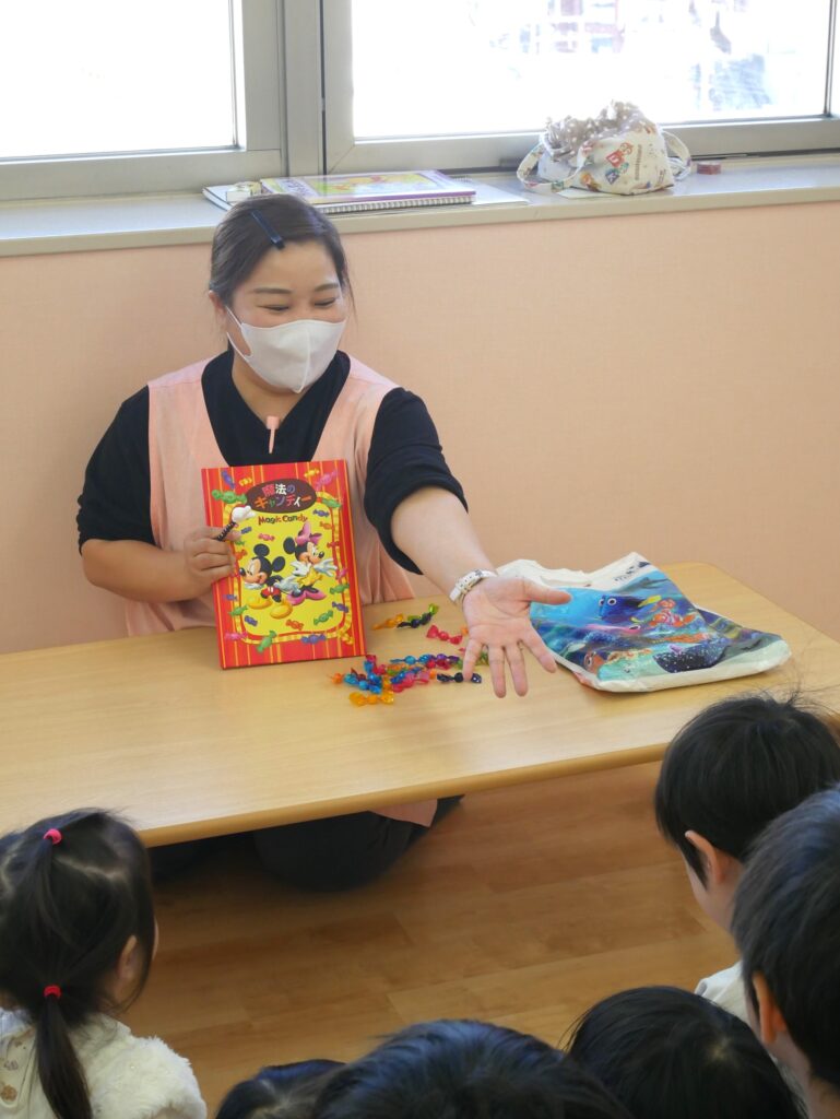 「絵本のキャンディーが消えた!」「絵本からキャンディーが出てきた」とびっくりしていました😊