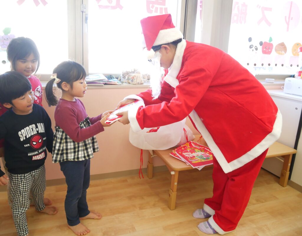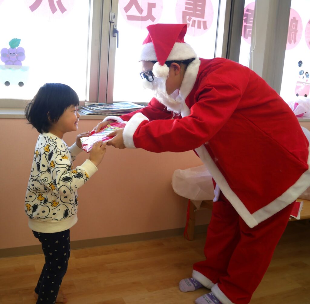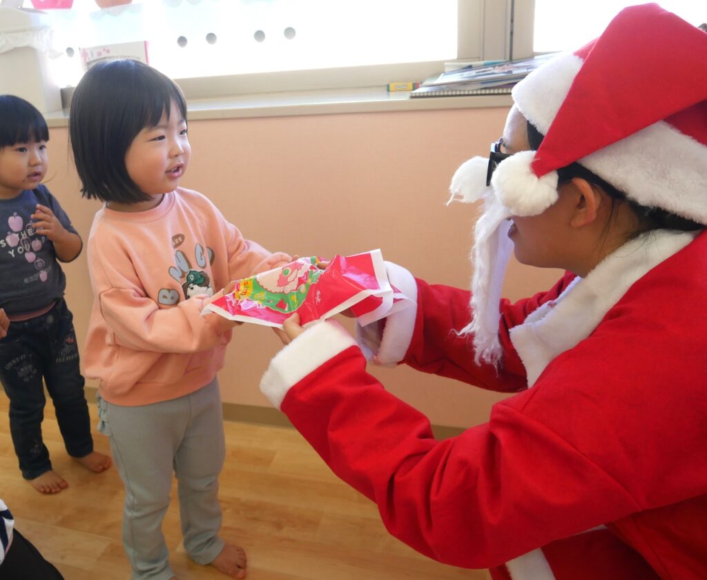 サンタさん🎅からプレゼント🎁をもらうと、「ありがとうございます😄」とお礼を言ったりペコリとお辞儀をしたり、みんな嬉しそうでした。