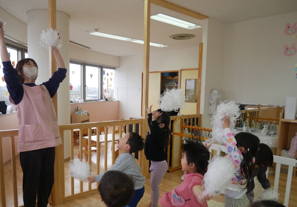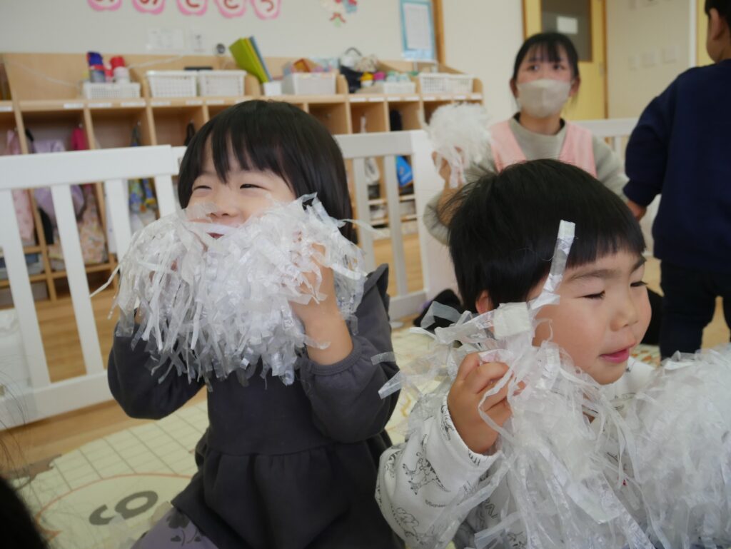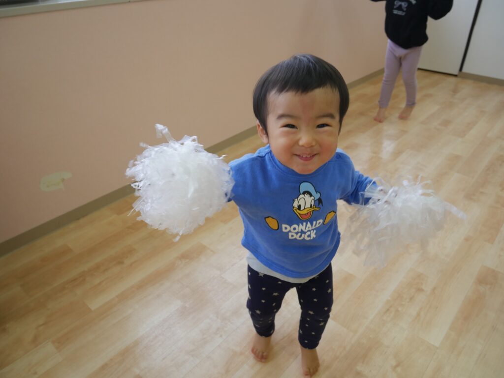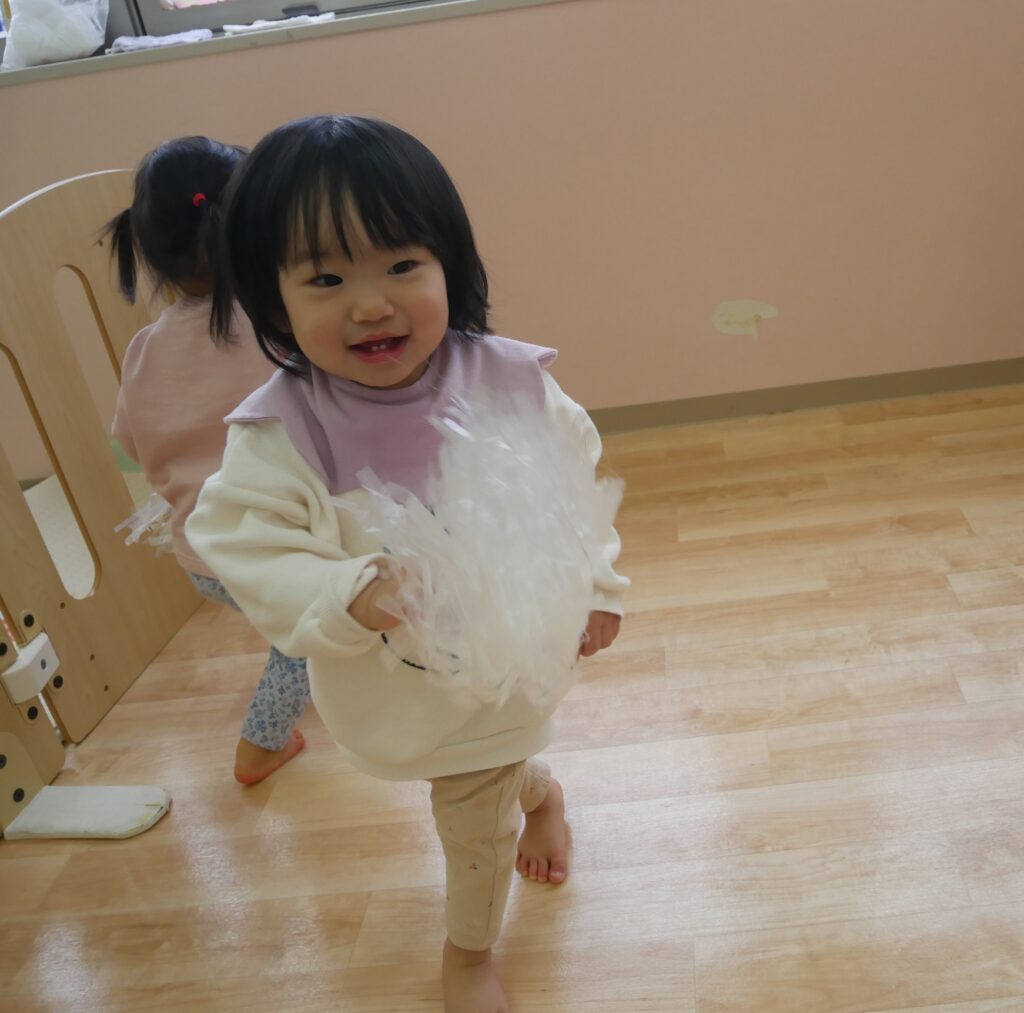 音楽に合わせて、シャンシャンシャンとポンポンを振って、お部屋はきれいな雪でいっぱいになりました🤗