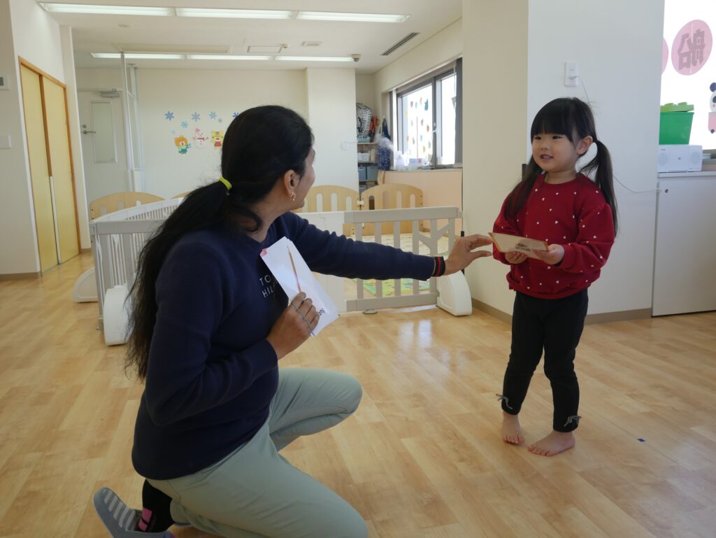 「分かった!hot!」と元気に答えてカードをもらい、みんなニッコリです😊