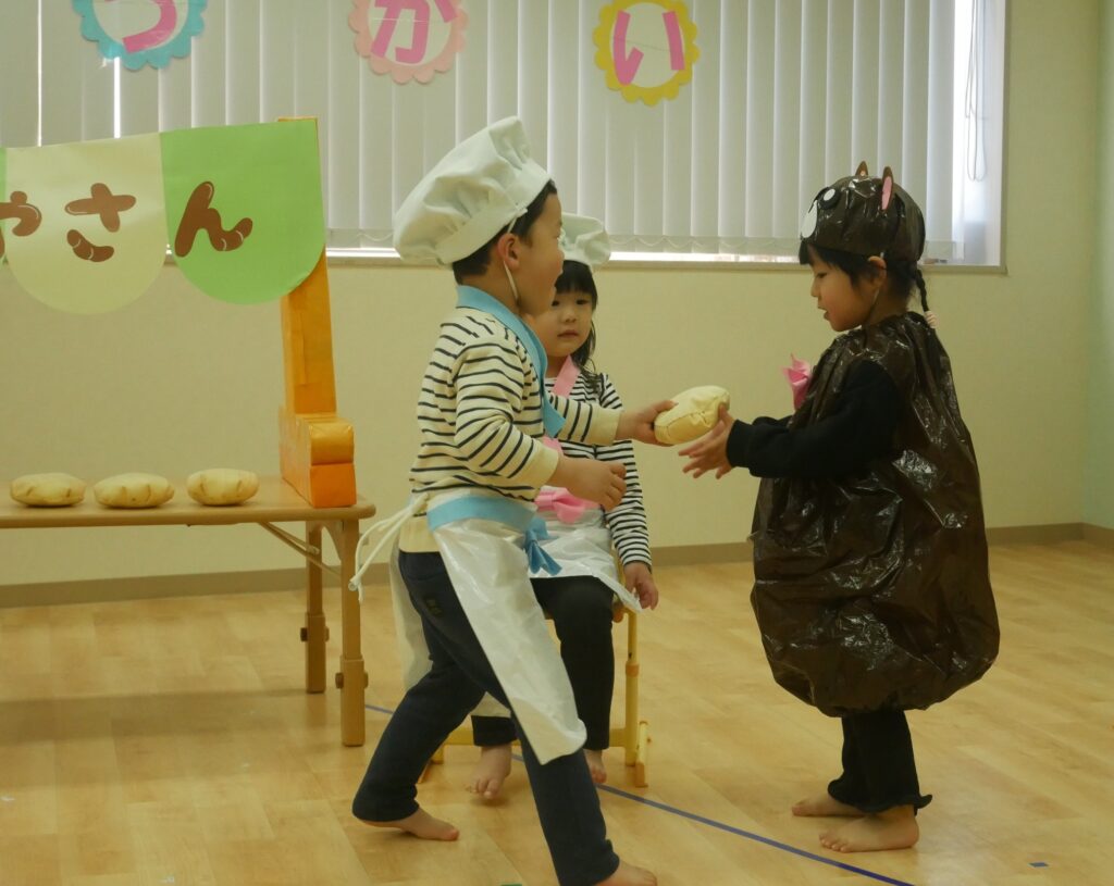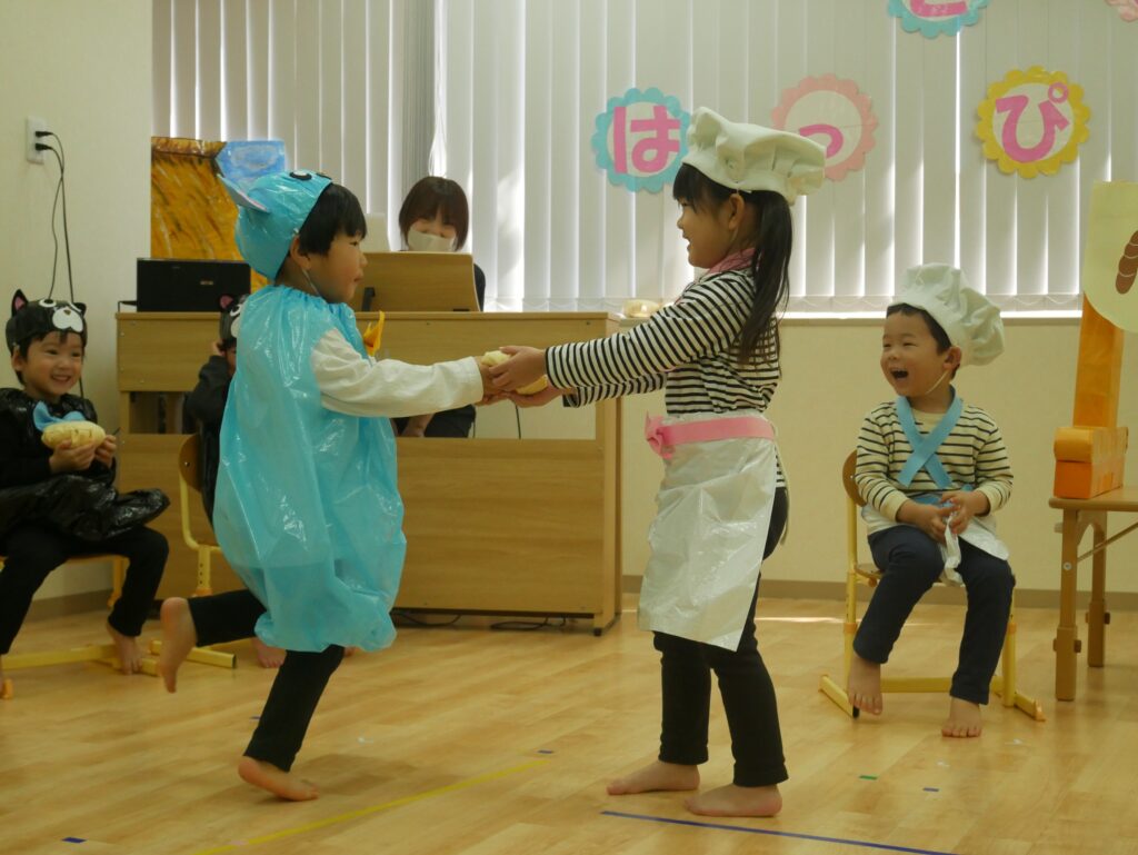 続いて、『6つのメロンパン』の劇を行いました😊