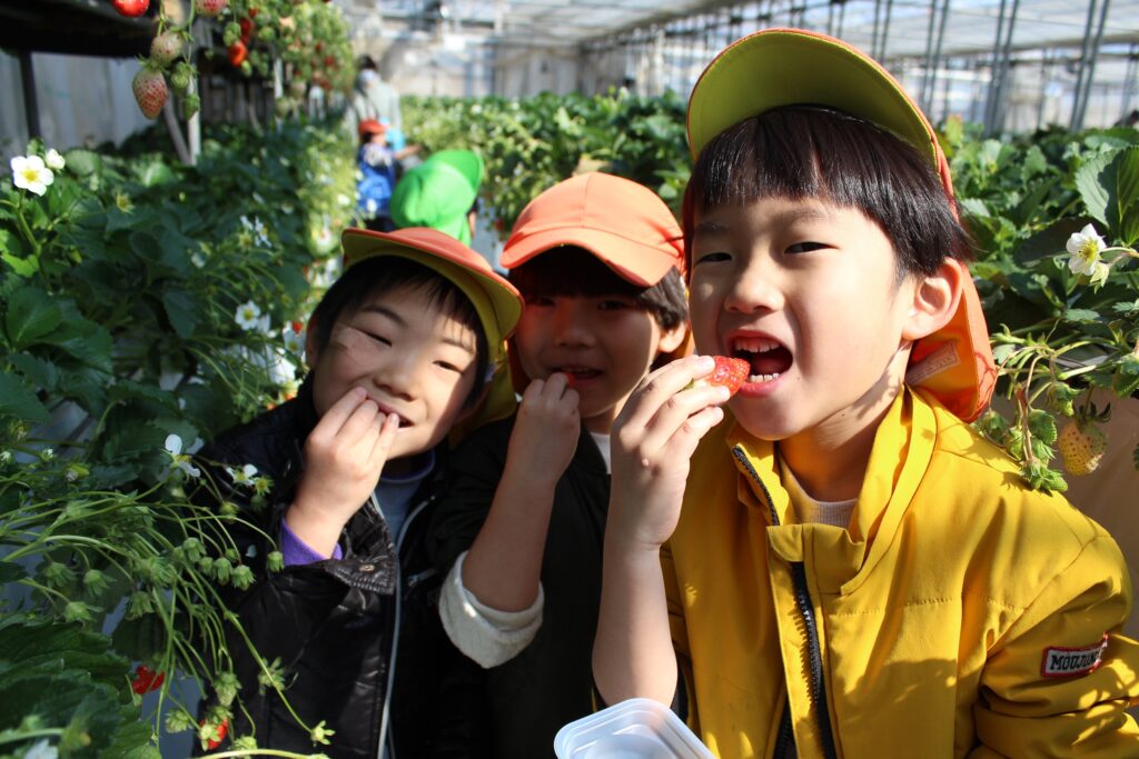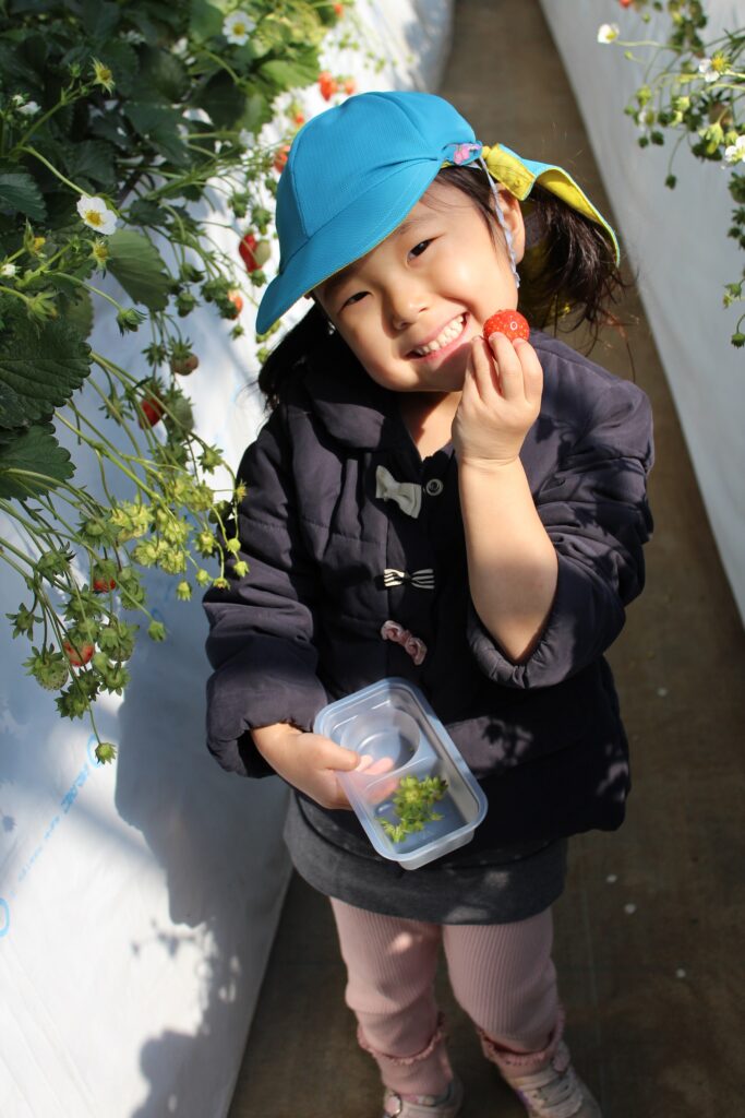 農園からの帰り道は「いちごおいしかったー!!」「100個も食べたよ!」「またいちご狩りしたいな~♪」