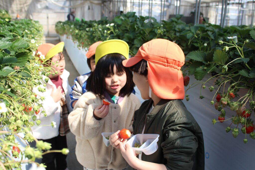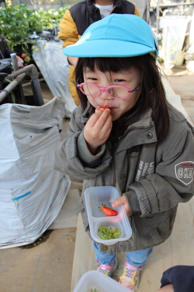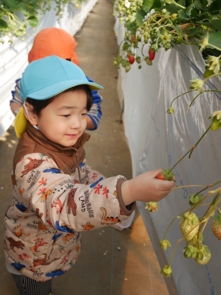 小さいフルーツ組さんは初めていちご狩りをするので、ドキドキワクワクしている様子でした💓