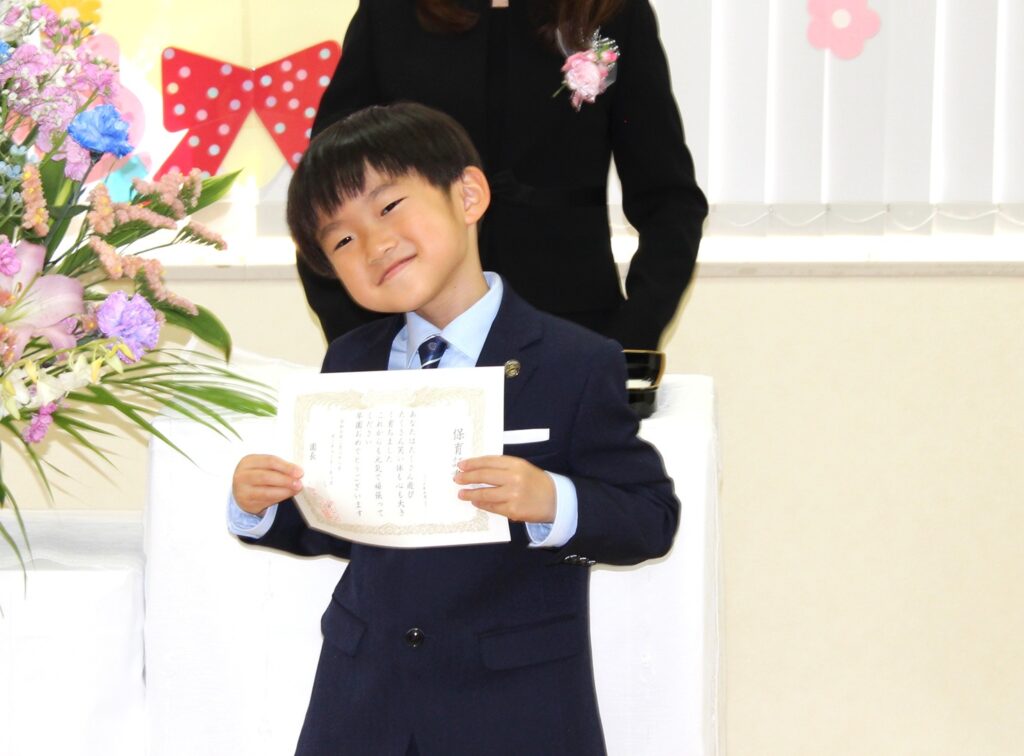 保育証書をしっかりと受け取り、立派な大きいフルーツ組さんです。