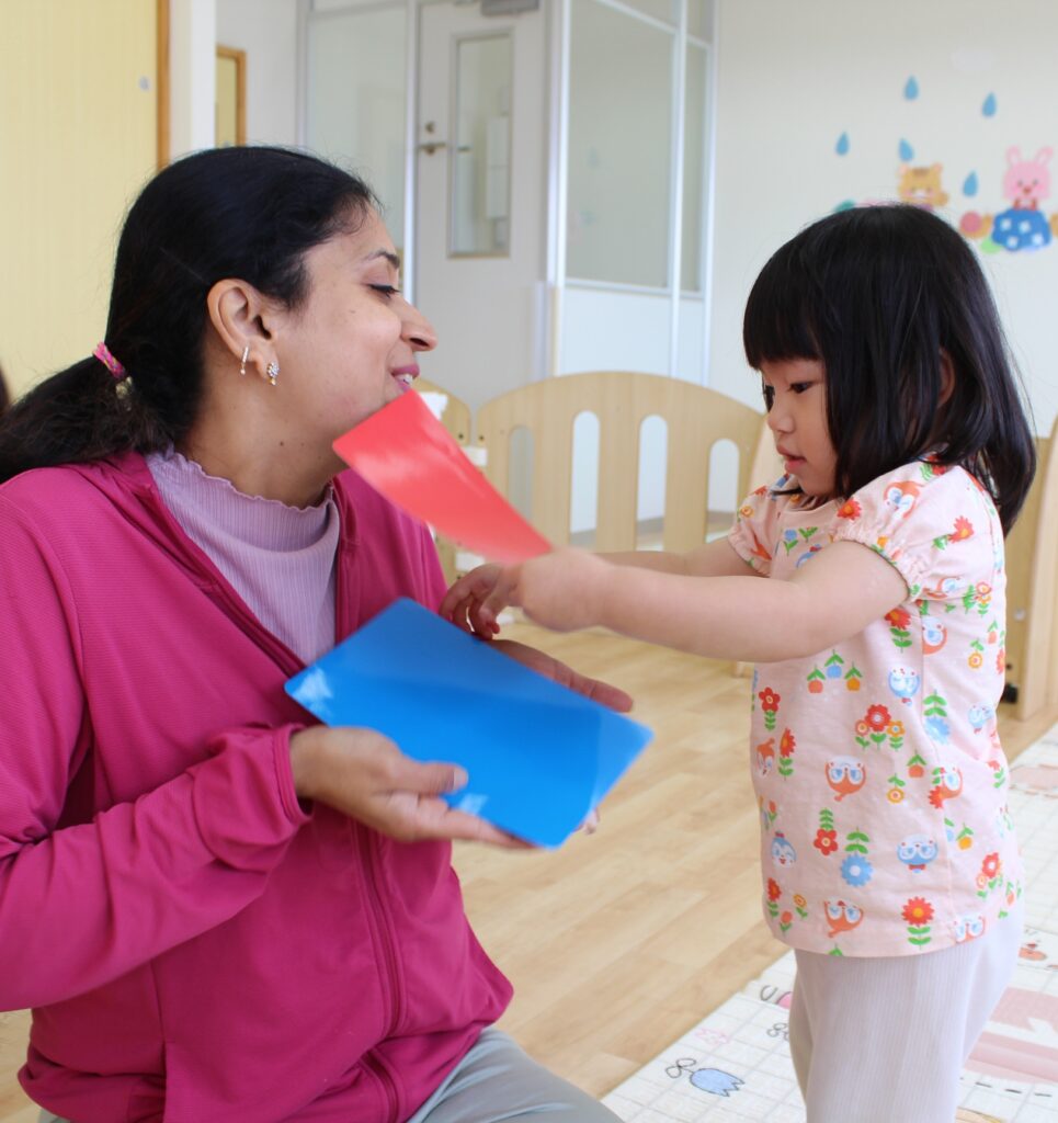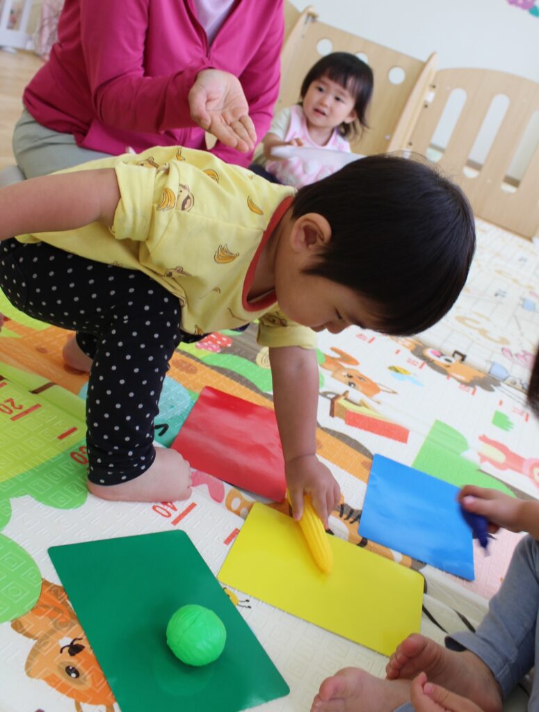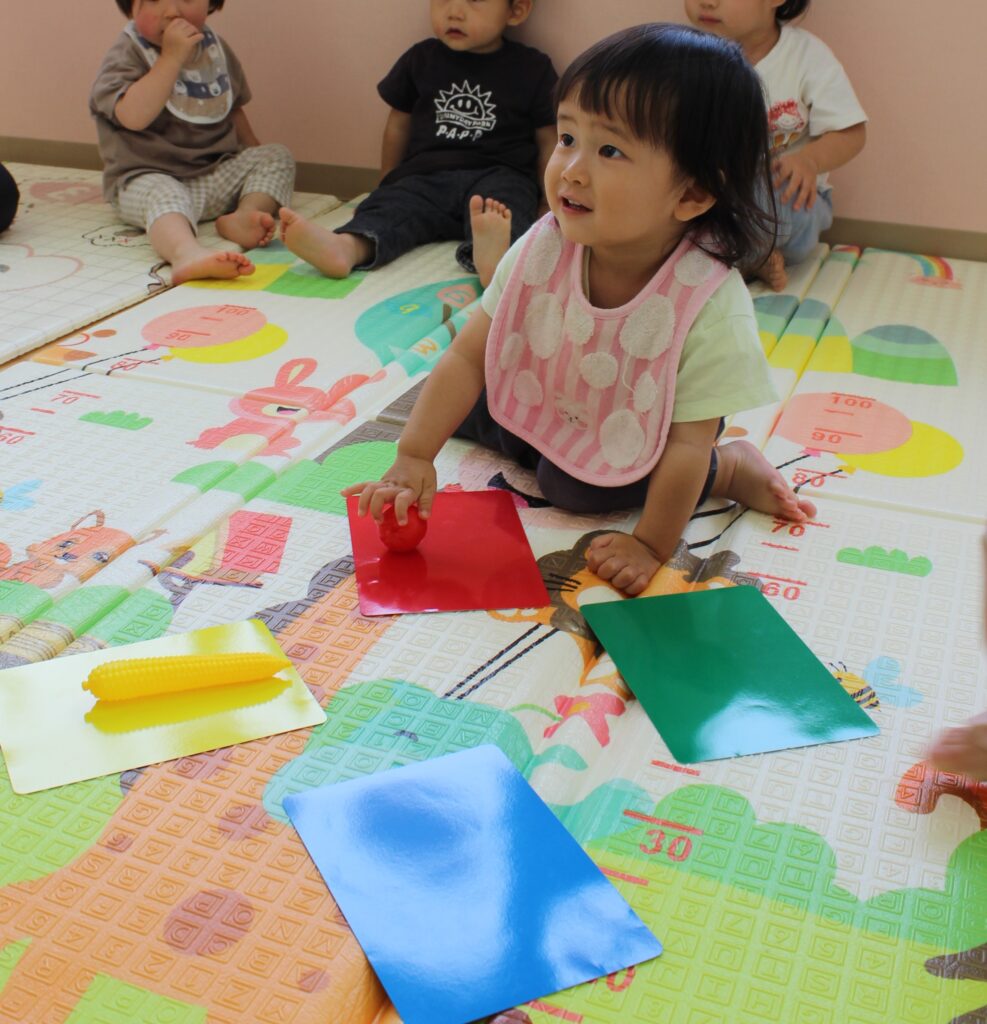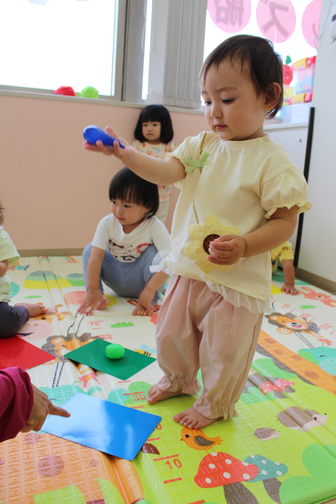 オレンジ組さん少し迷いながらも、ちゃんと同じ色のカードの上に置くことができました👏
