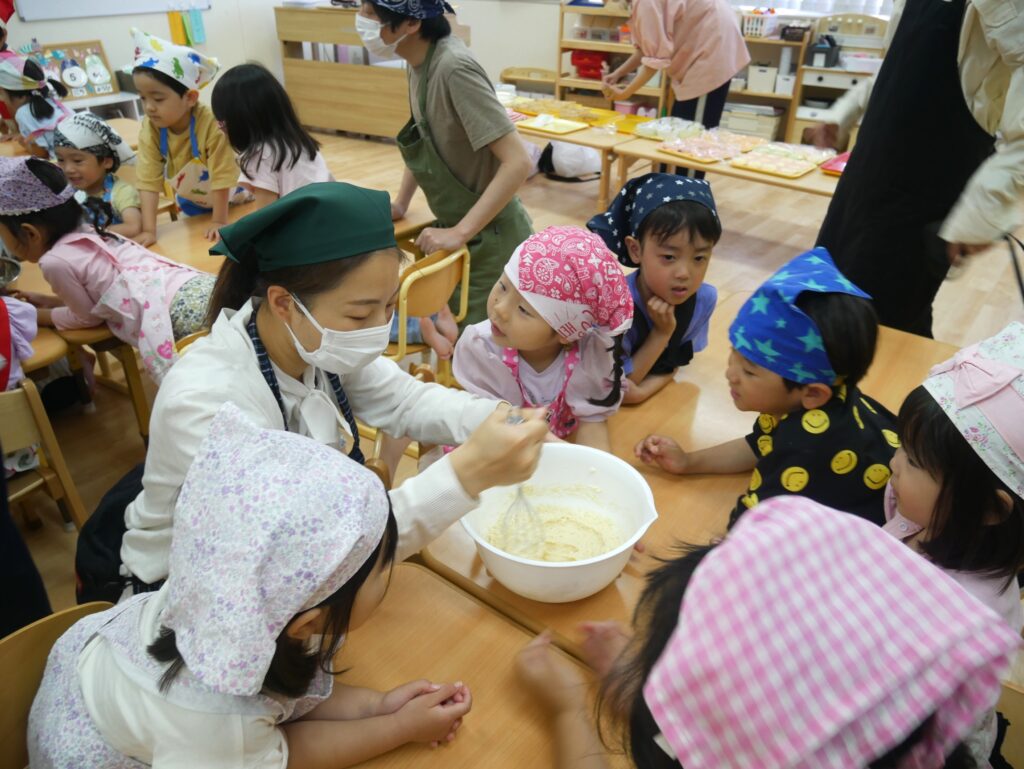 「こっちにもう少し入れた方がいいよー👆」と子どもたちと会話をしながら進めていただきました!