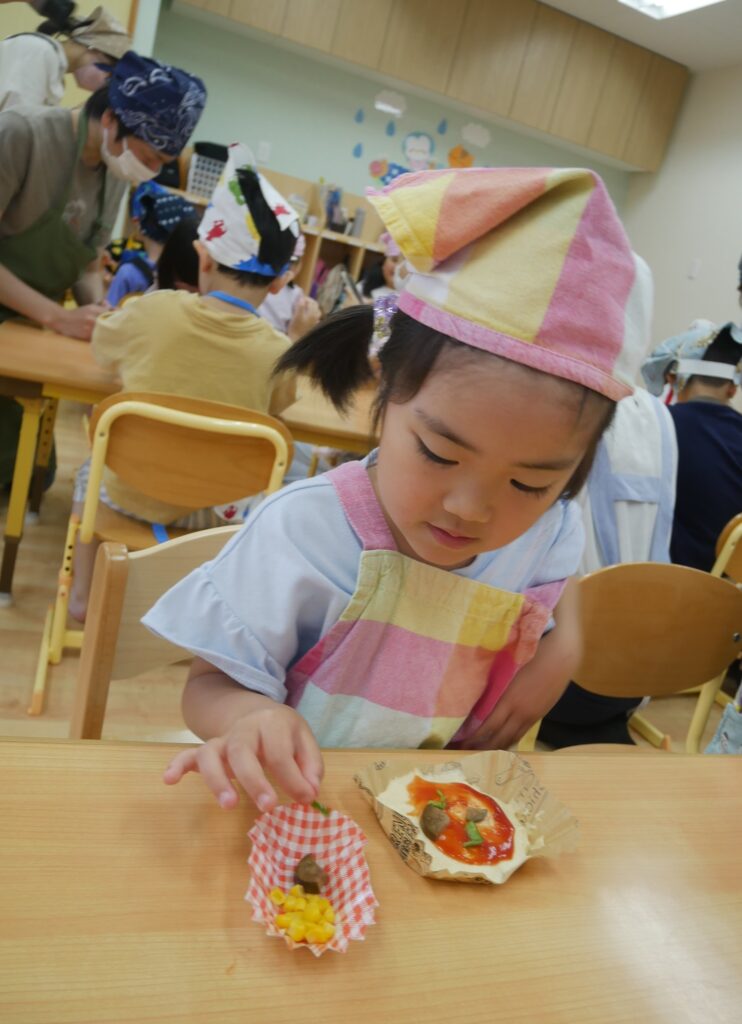 給食室で焼いて、お昼ご飯に食べましょう🍕