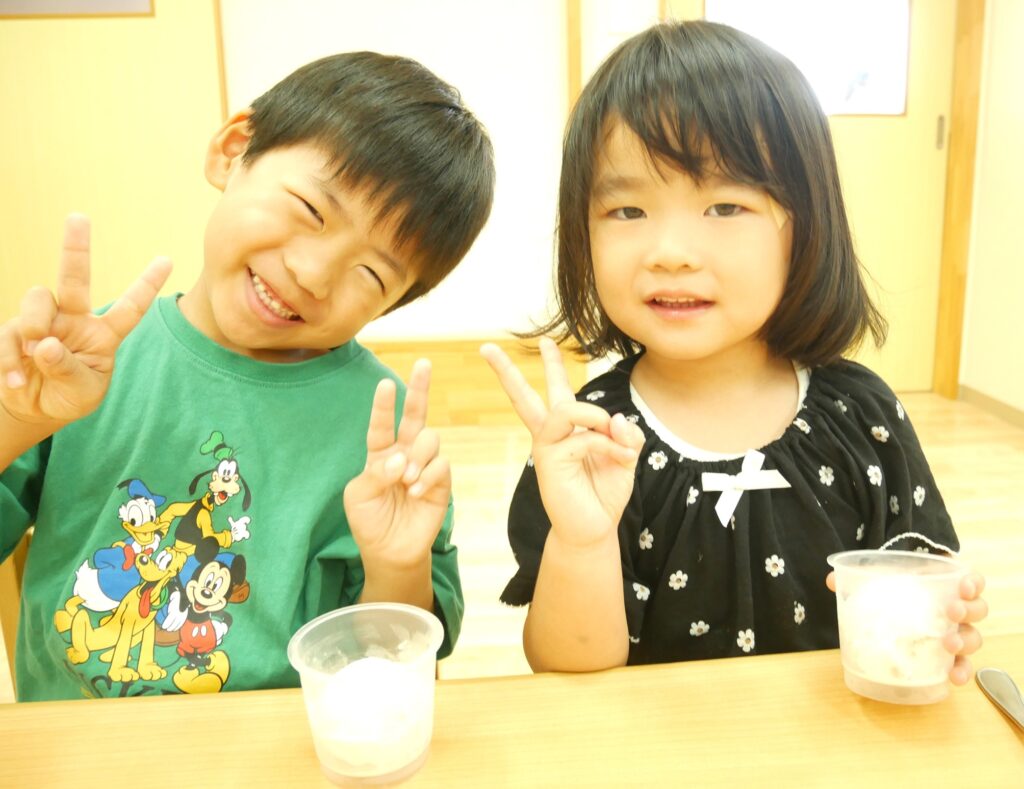 「おうちでも作りたーい!」「また食べたーい!」と食べ終わってもアイスのお話をたくさんしていましたよ😊