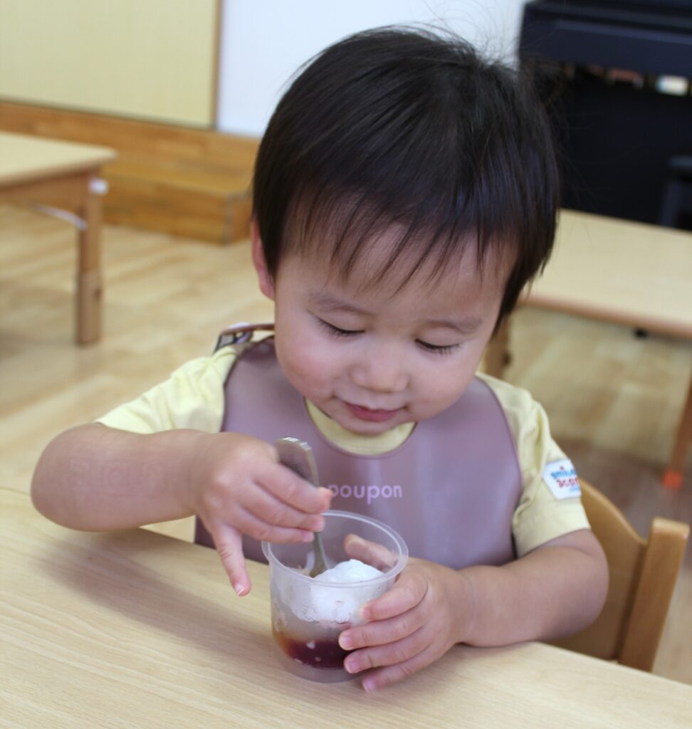 「つめたーい😊」と言いながら、「おいしくなーれ!」と楽しそうにクラッシュしていましたよ😊