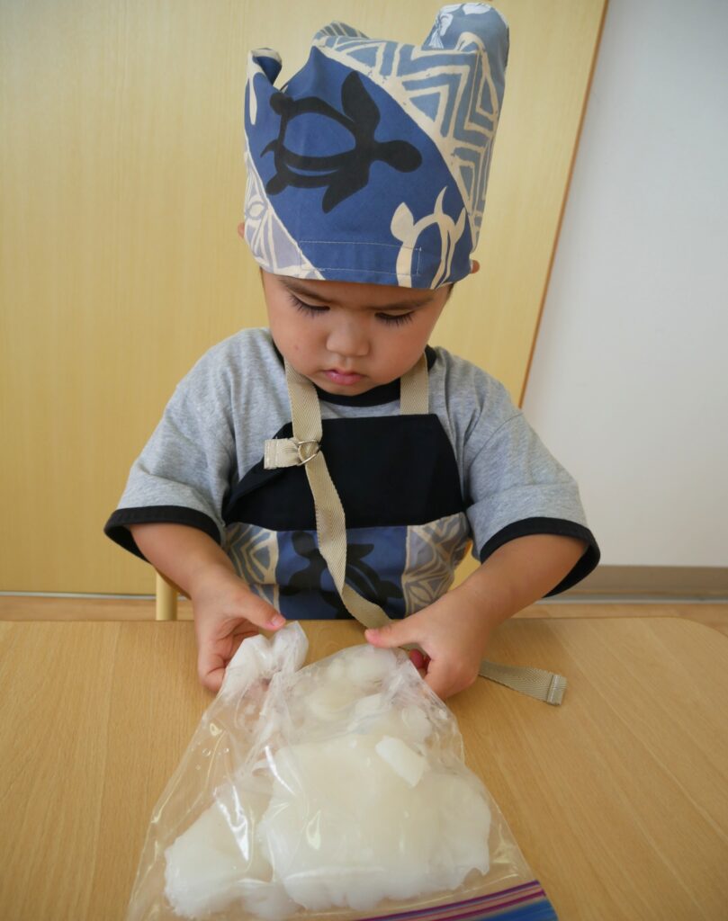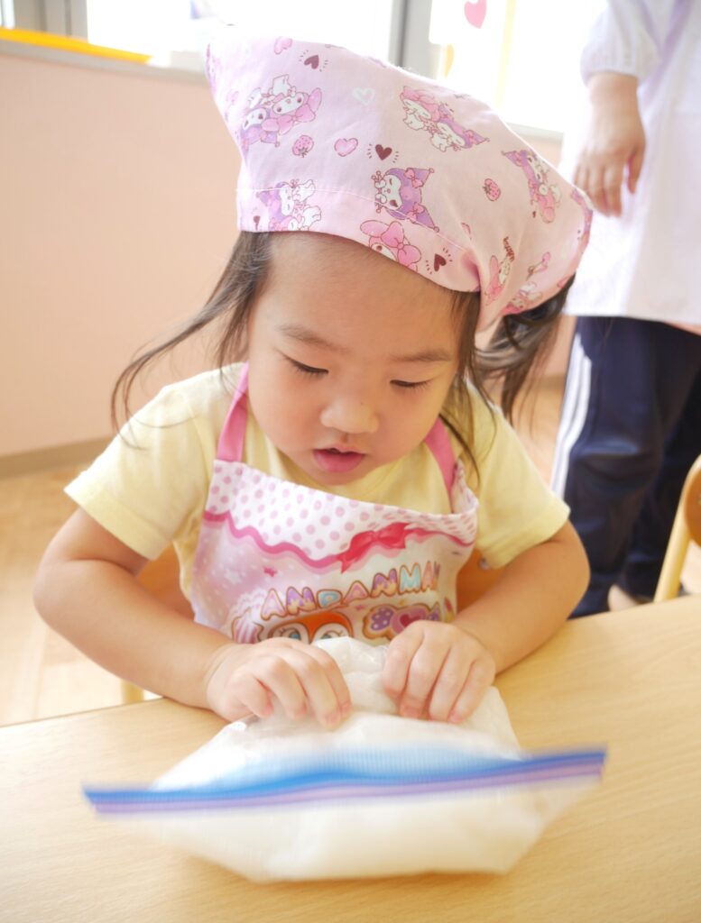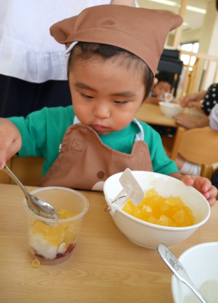お友だちと協力して、上手ににぎにぎしておいしいクラッシュゼリーができました😊