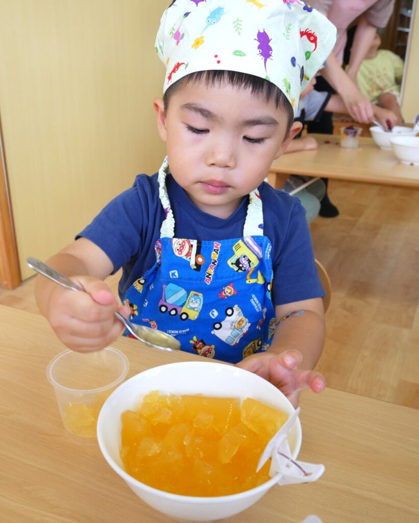 8月食育 クラッシュゼリー作り《キウイ🥝・オレンジ🍊・パイン🍍組》