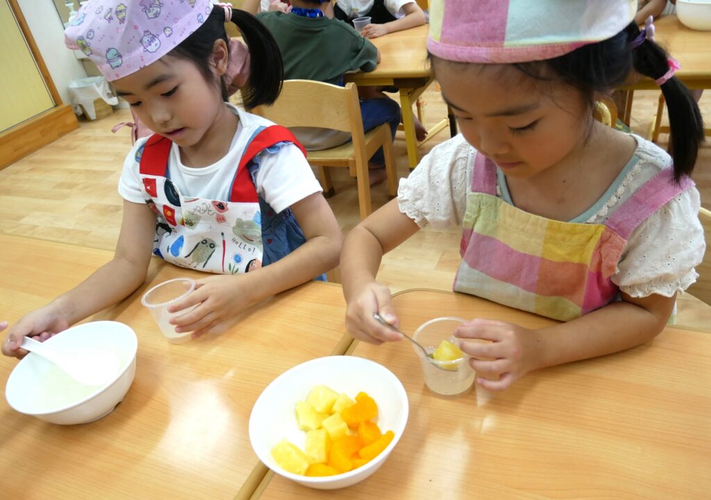 ゼリー作りを元気いっぱい楽しんでいたフルーツ組さん✨