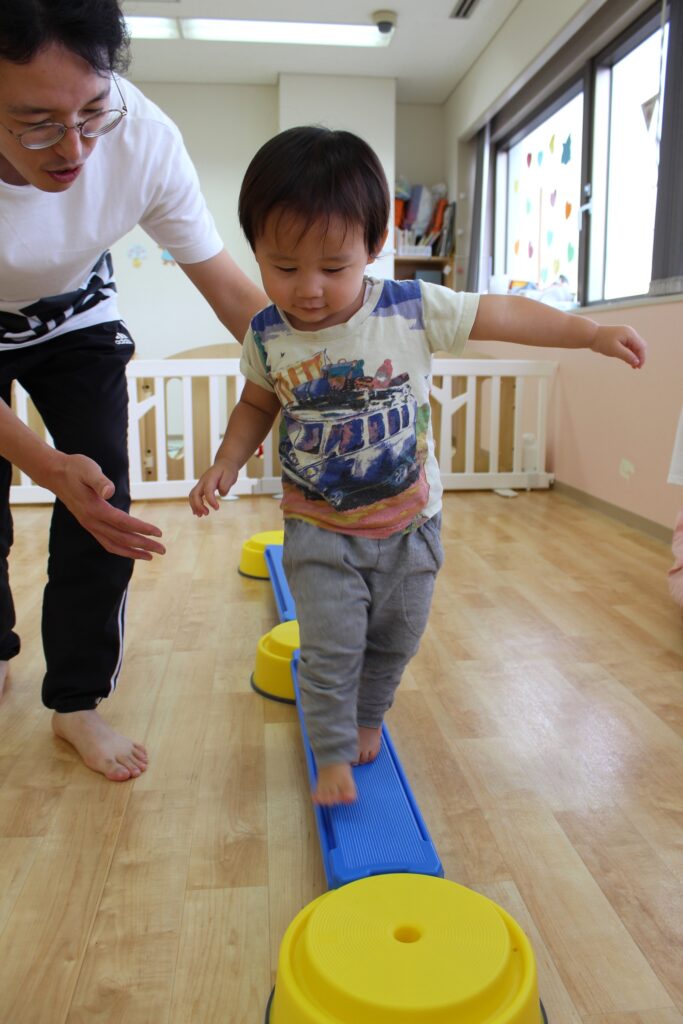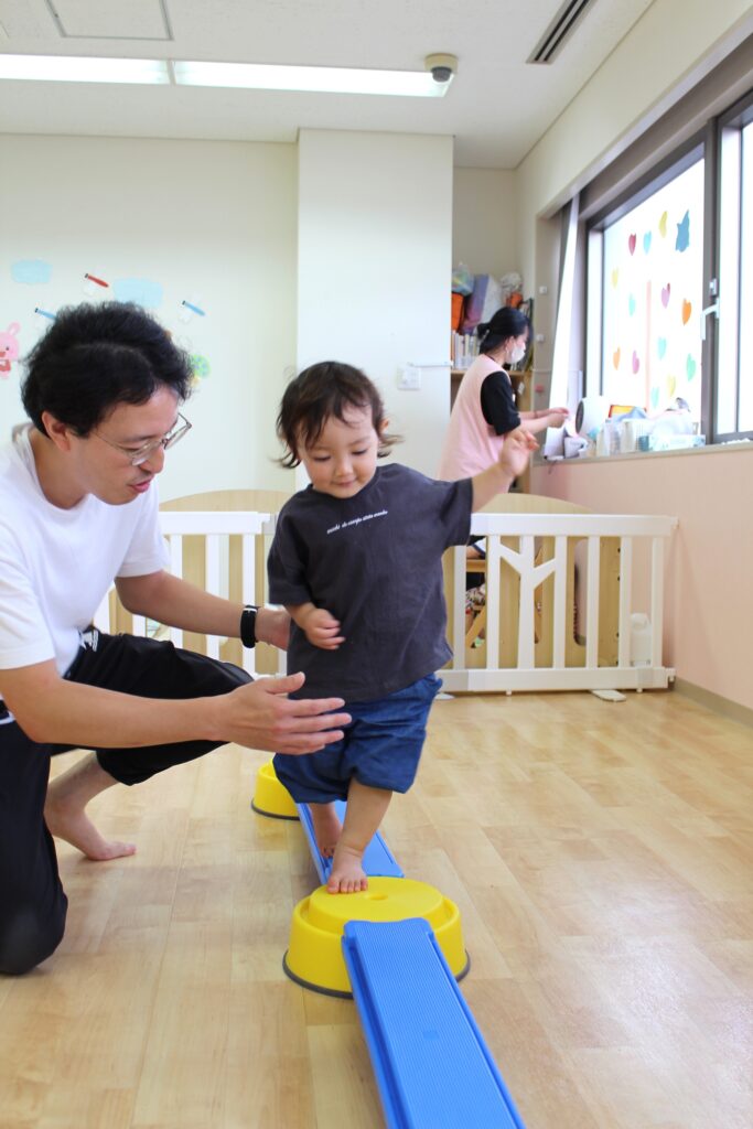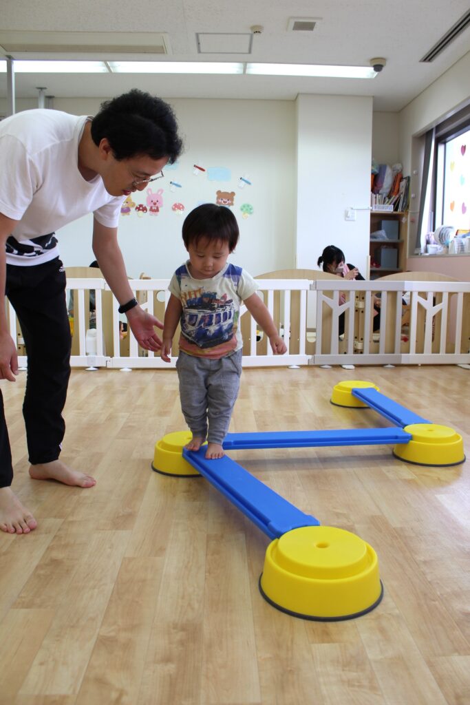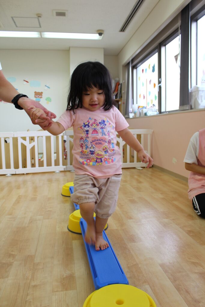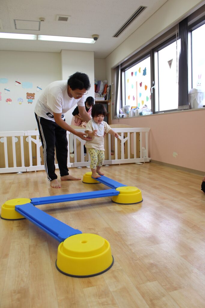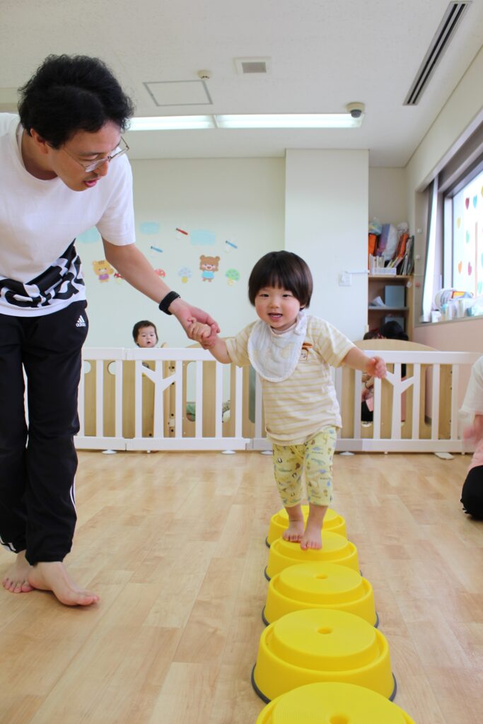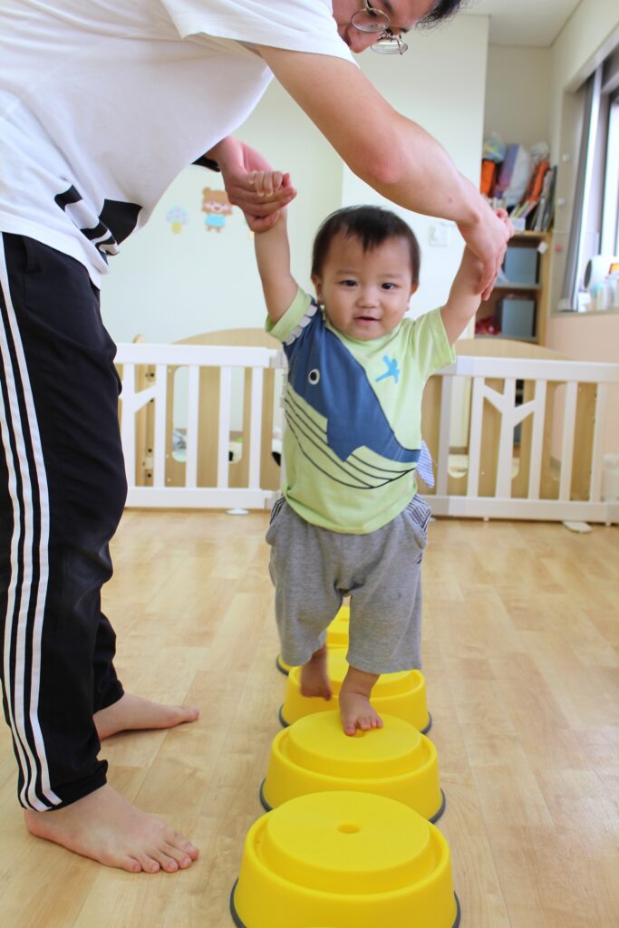 しゅう先生に手を繋いでもらいながら一歩ずつ歩いてみました。