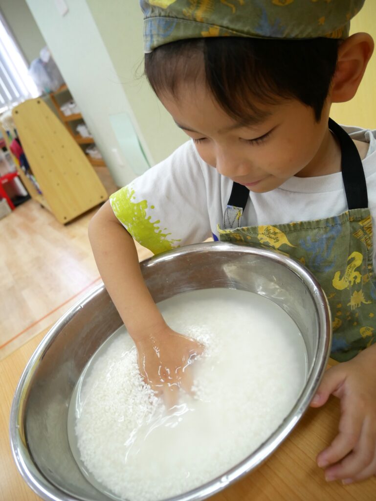初めは白くにごっていた水が、といで水を変えていくと透明になり、その様子を楽しんでいましたよ😊
