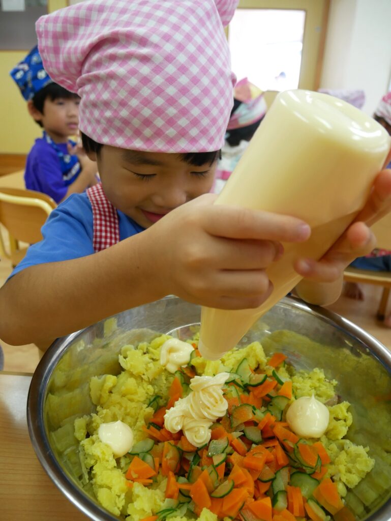 まずは小さいフルーツ組のさつまいもサラダ班から🍠