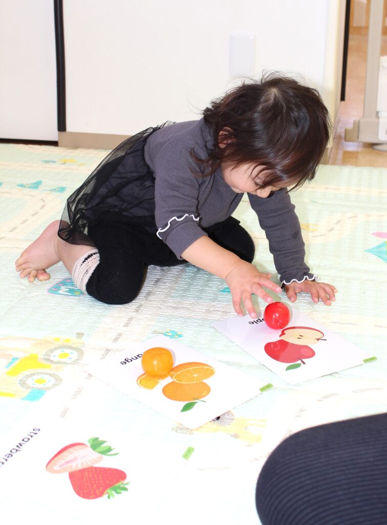 果物のカードの上に、同じ種類の果物を置きますよ!