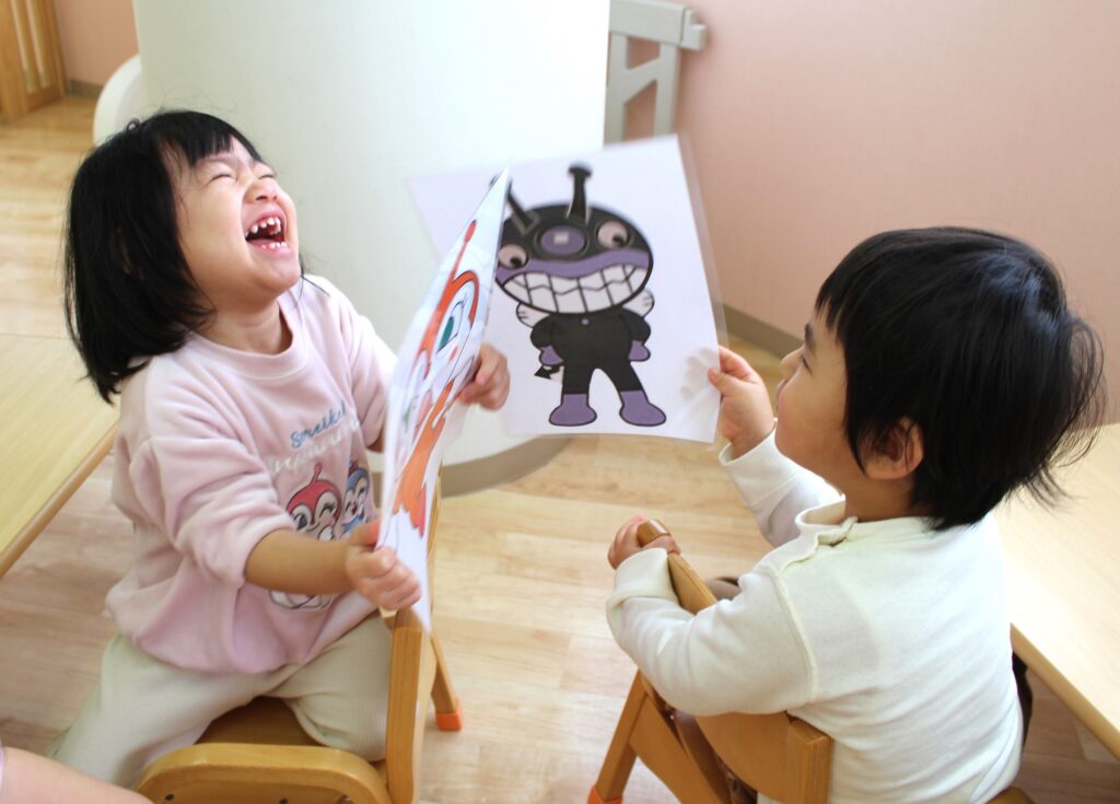 お友だちと出来上がった『ふくわらい』を見せ合って大爆笑😝