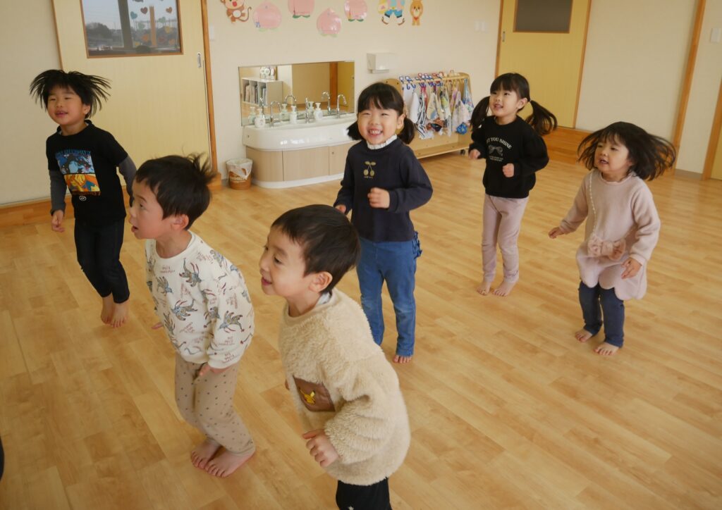 「1.2.3.4!」と元気にかけ声を掛けながら、しっかりと体を動かしました!