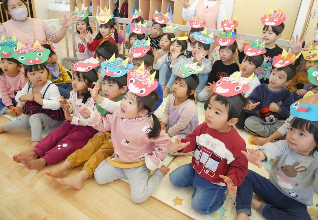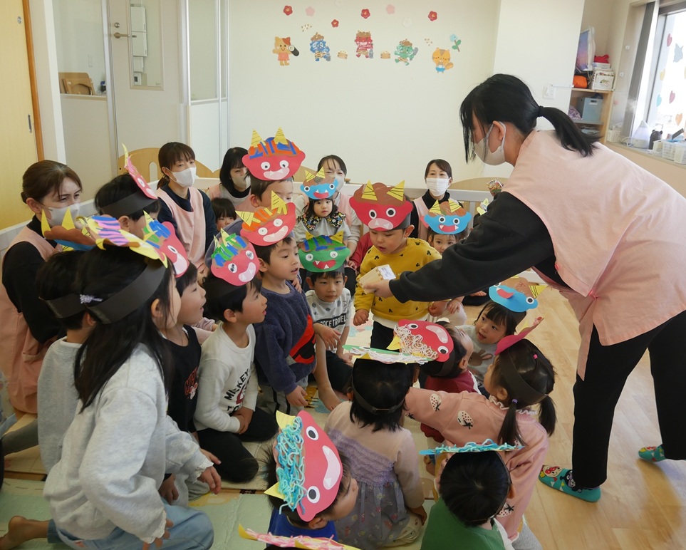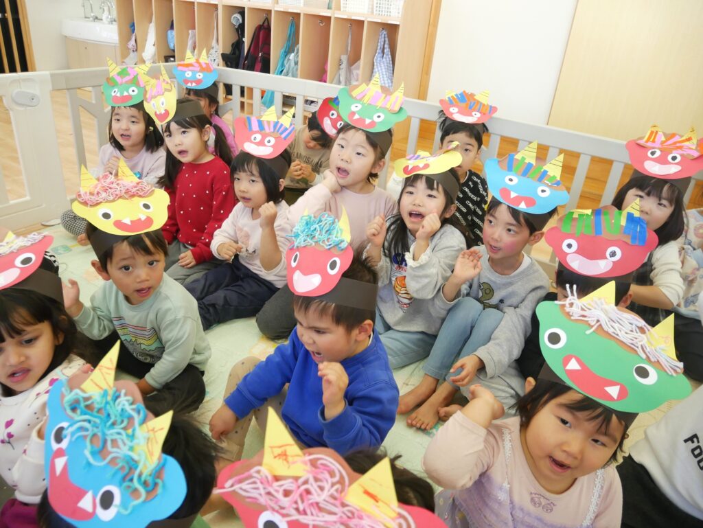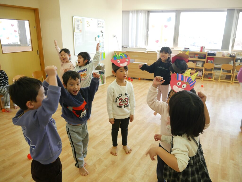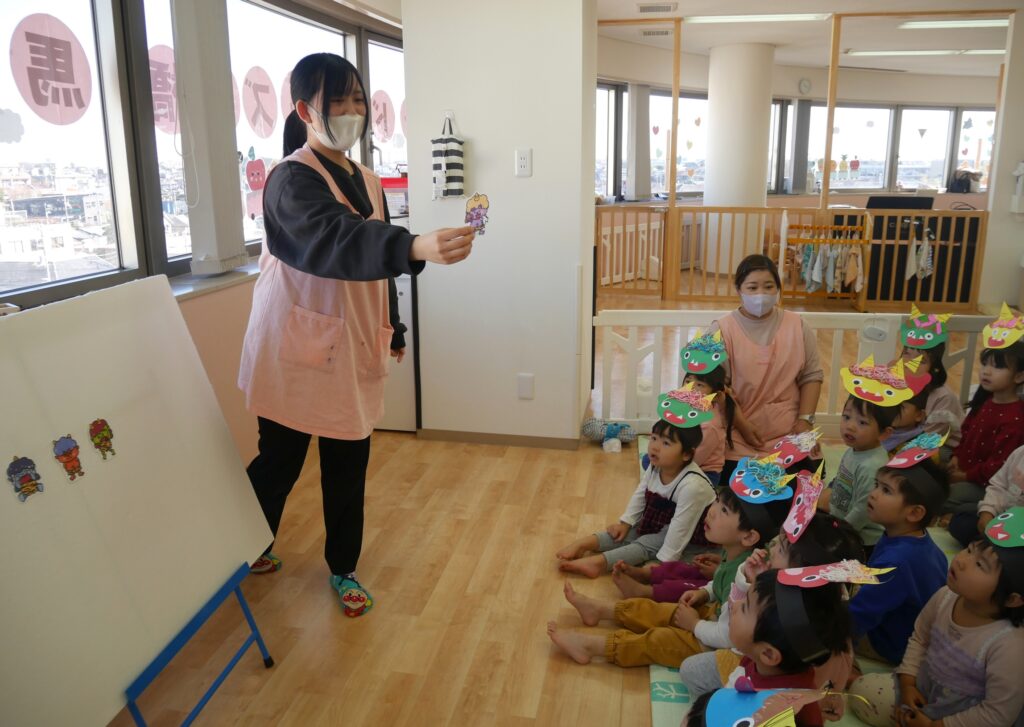 「節分とはみんなが1年間元気に過ごせるように病気や悪いものを追い払う日のことを言うんだよ😊」とお話をしました。