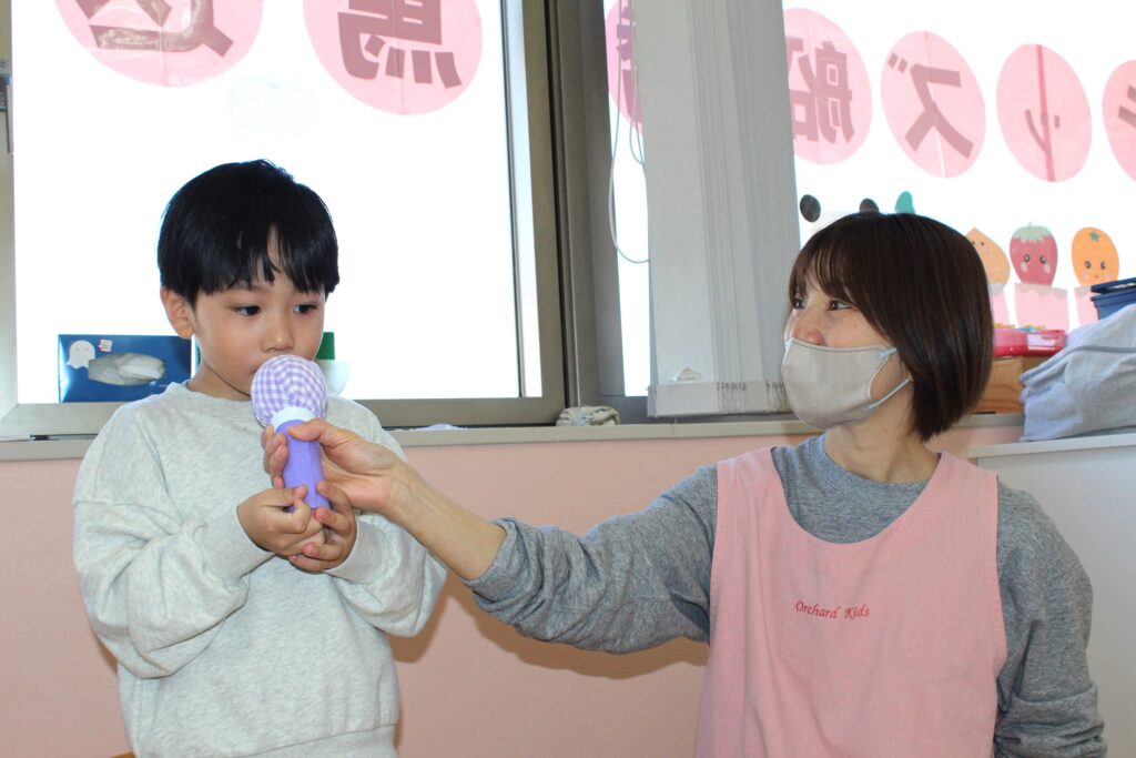 先生がお名前を聞くとマイクを持ってしっかりとお名前を教えてくれましたよ😊