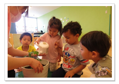 お子様の小さな気づきや発見を大事にしながら、戸外活動では四季を感じられるよう自然に触れたり、食育活動を通して「食べる力」を育んだり、体操教室や英語レッスン、リトミックなどの様々な活動では、お子様が自ら考え、楽しく挑戦できるようにサポートしております。また人と人との関わりの中でお互いの思いや考えに気づき、一緒に工夫したり協力したり、やり遂げる経験も大事に保育をおこなっております。