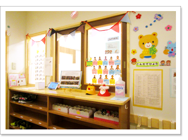受付です。登園・降園の確認はこちらでお願いしています。